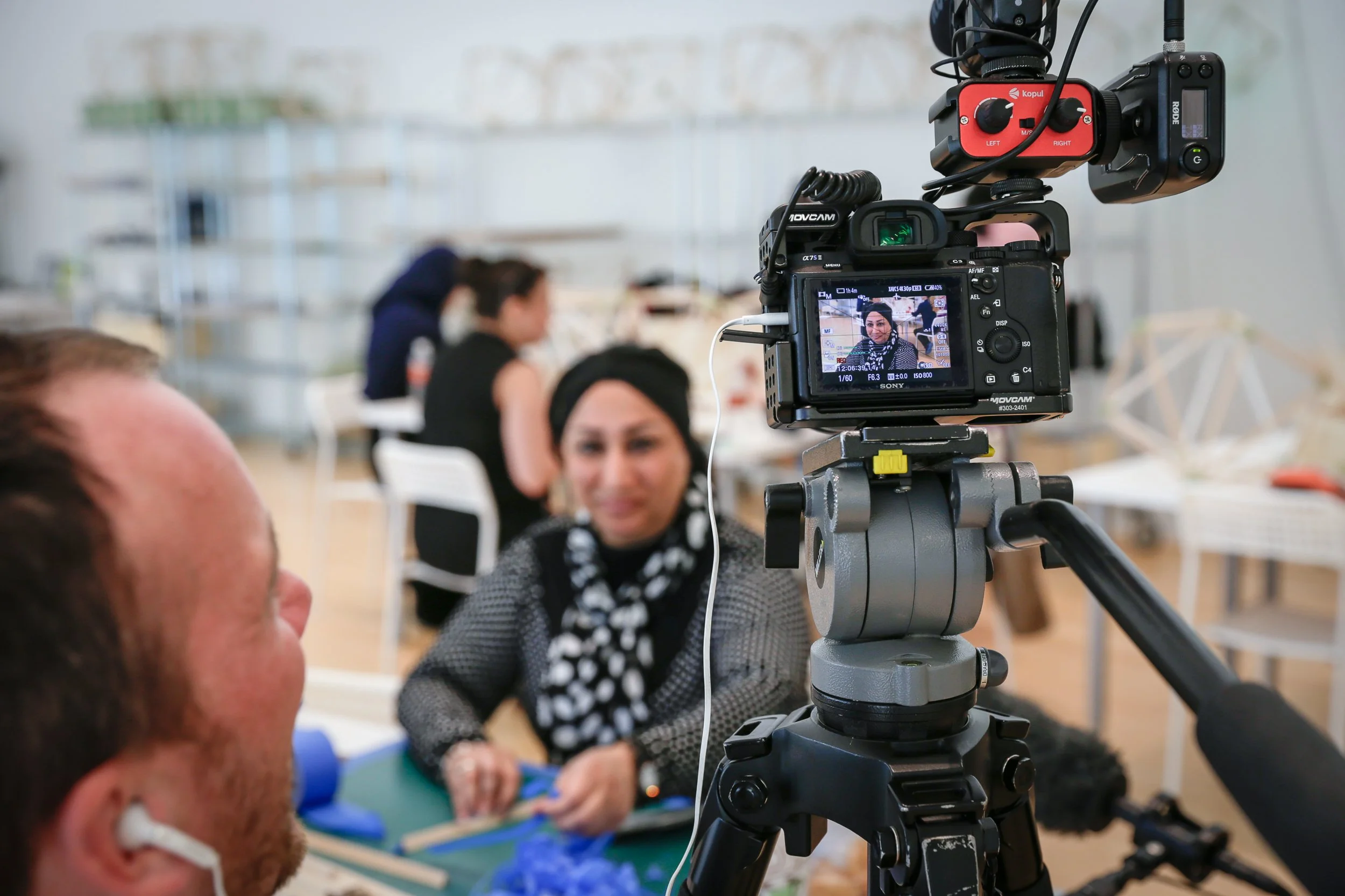 In partnership with Interfaith Ministries of Greater Houston, the Moody Center for the Arts has invited international refugees to engage in the communal construction of green lights with students, faculty and visitors. Throughout the course of the workshop, a multi-faceted program based on shared learning principles, including language courses, job training, seminars, artist interventions and film screenings, provided a forum for discussion of the current geopolitical issues surrounding the global migration.” – The Moody Center for the Arts